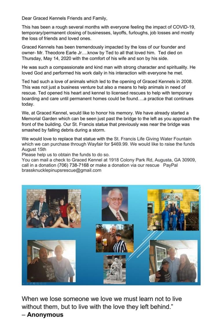 Graced Kennels since 2008, family owned. We have some of the most hard working employees, each individual carries a specialty which is what makes us such a great team to care for your pets and make them feel like family. Through blood, sweat, tears, rain, sunshine, hot blazing weather or the freezing cold.. we are here to care for your fur babies like our own. Our facility recently got lots of damage last year due to hurricane Helene in September 2024, which caused our facility to close as trees fell through the roof, staff was still present at the time of the hurricane assisting pets to ensure their safety. We are blessed to have been able to have our grand reopening as of March 2025 and are back better than ever to provide your pets the best care!