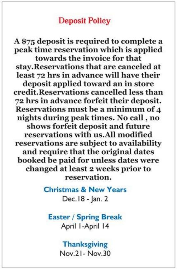 * Please note that these charges can vary from one visit to the next depending on your pets behavior. We have the right to turn away any pet that we feel is unsafe for our staff to handle or causes a safety concern for their self or other pets. We also have the right to turn away any customer that is disrespectful or abusive to our staff at anytime. *
