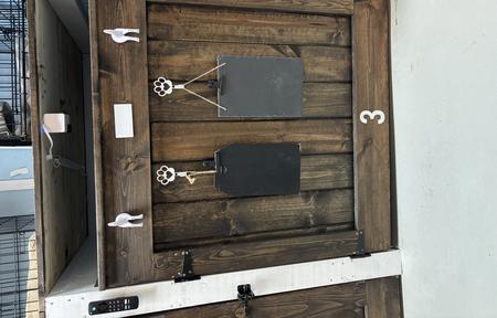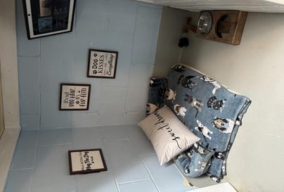 Looking for an at home like environment for your small pup? Our Mini Suites are the pawfect fit for your fur baby! This suite measures 3ftx3ft .They are all inclusive with a fluffy bed just for your pup, a hand-crafted wooden feeder, plump pillow and luxury blanket to cuddle up with all while comforted by a small flat screen tv that plays calming music or Bluey throughout the day. Owner is even given camera access to check in on their pet at any time while they slumber away in this cozy room. Your pet will also receive a complimentary puppucino on us.Our facility only has a total of 3 Small Suites, so hurry and reserve your pet's spot, treat them with a luxurious stay!